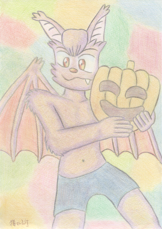 he is my bat boy character Kuraresu in wizard style and casting a magic and I draw this art in 2012. I sometimes draw the witch characters and I love the wizard hat and on this art I make him put on a wizard hat and it's really suitable. and I feel this art have very deep color and the hatching effect and I love it, and I notice his chest have much fur, before I sometimes use this way.