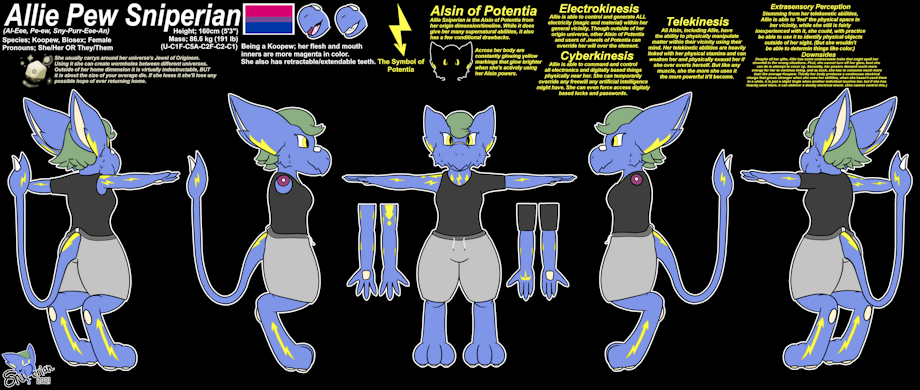 This version of Allie Sniperian is from an alternative reality where she had miraculously became an Alsin granting her super powers and she found the Jewel of Originem that allows her to travel the multiverse!