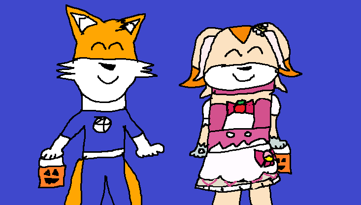 Tails is dressed as Mr. Fantastic and Cream is dressed as Cure Whip