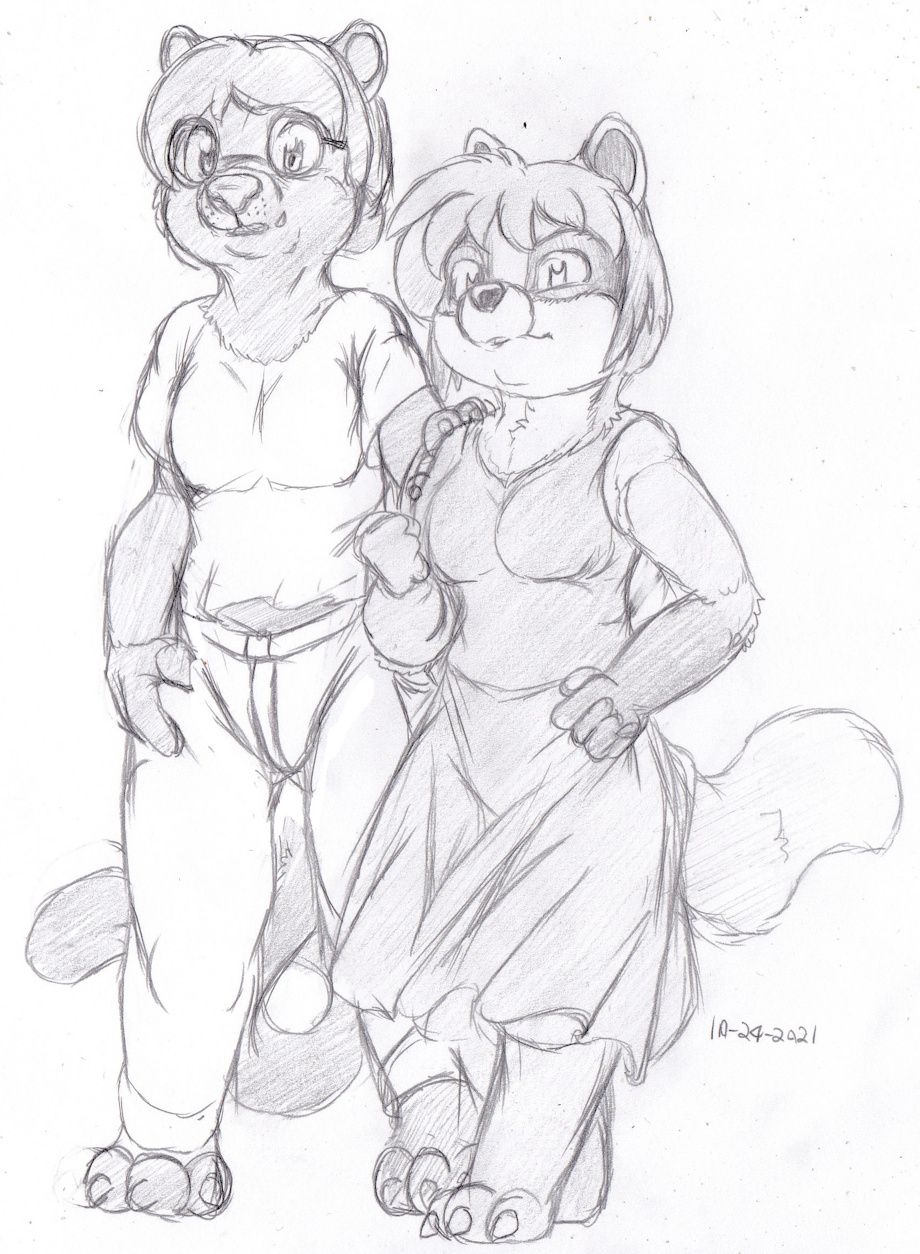 A sketch of Maximilian Ultimata (right) and his girlfriend Naomi Pearson (left) that I won from game night.