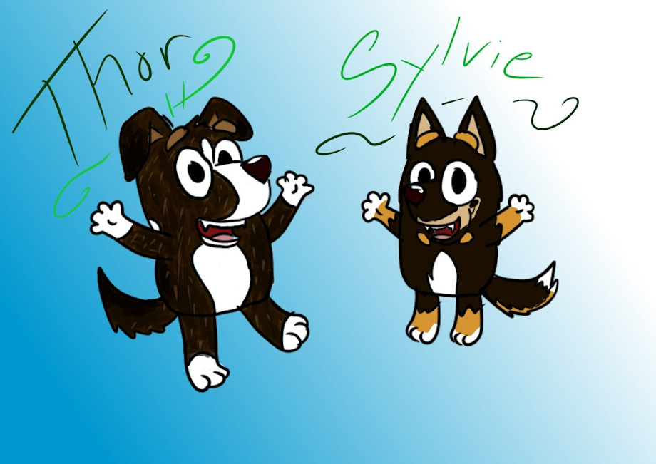 My dogs in the style of bluey. That's such a cute show