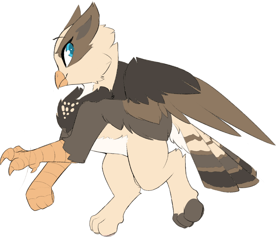 Simona! Also part owl like her friend Barran. She likes to collect rocks and shiny things, and is an artist!