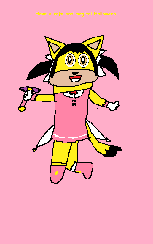 Honey in the outfit of Halloween Roll, a skin from Megaman X Dive, wishing all a safe and magical Halloween Night.