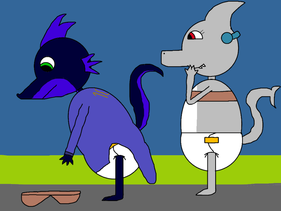 Pic 2- Kalama was having a fun time trick-or-treating, but unbeknownst to her her loin cloth for her costume slipped of exposing her diaper. Leon noticed this and bent over to pick it up so he could give it back to her. Unfortunetly his vault tech onesie popped partially exposing his diaper. Kalama heard this, turned around and snickered, unaware that he was retieving her castaway loin cloth