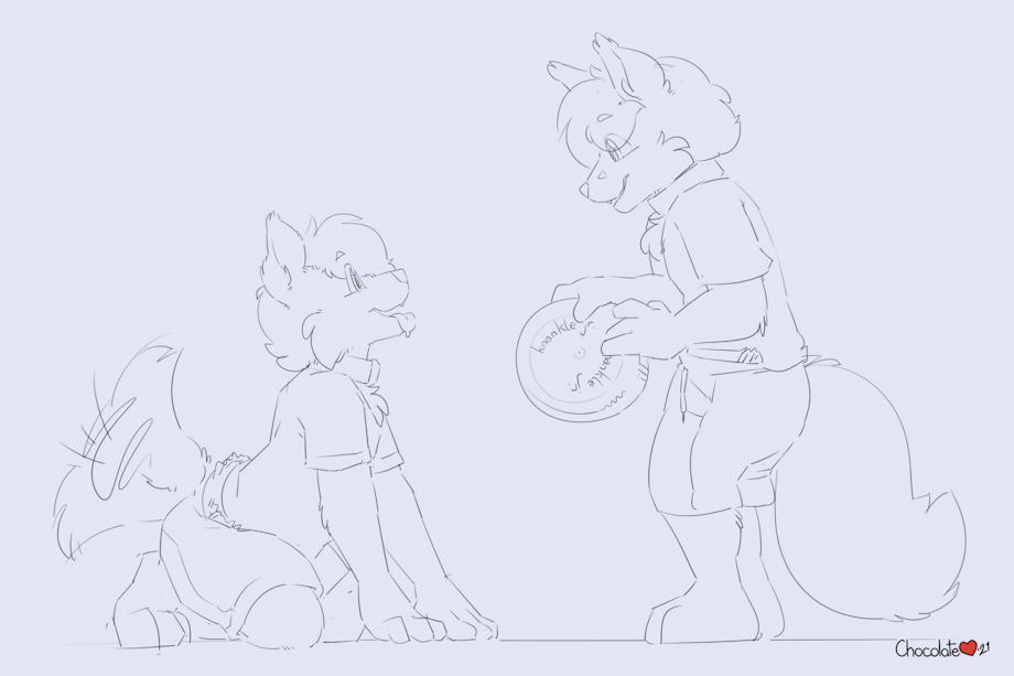Russel came up with the idea of an AU with him and Austin where they picked up playing the sport of whisbee (no affiliation) at an early age. Here they are trying it out together for the first time.