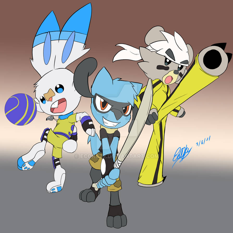 Taki the scorbunny, Lu (lucky) the riolu and Koda-Lee the KubFu