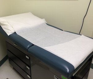 “Oh, I’m sorry. Yes, it looks like something jabbed you there and left a bit behind. Just a moment and I’ll get it out.” She opened a drawer to get what she needed and set them on the exam table. She opened a small bottle of peroxide and some sterile tweezers and paused to warn her patient, “This is going to sting.” She poured the peroxide over the wound and grabbed the thorn with the tweezers.