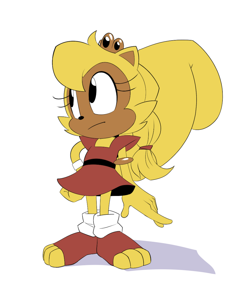 With this color change in mind, I remembered that the prototype Princess Acorn from the early version of Sonic SatAM also had yellow fur. So, I decided to have Fleetway Sally dress up as the prototype princess.