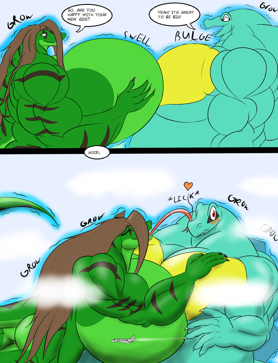 this starts with the totodile who met Marina beforehand, saw her transform from teen to rather big adult to get a hat from a tree. Totodile ran up to her and very exitedly asked how did she do that, can she get bigger, how can he do it, can he help her, etc
