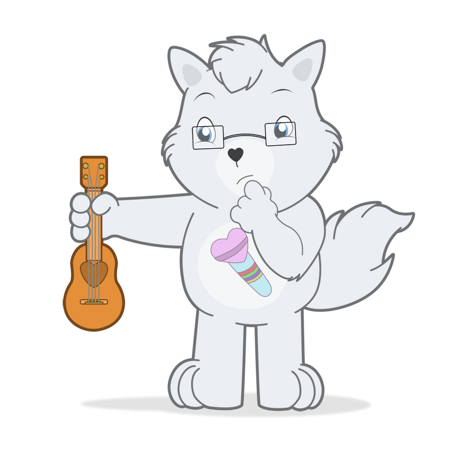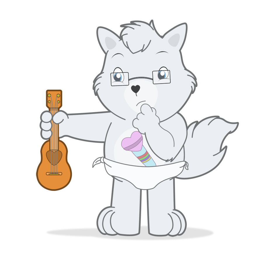Me as a Care Fox, studying a ukulele, an instrument I'm not too familiar with. Featuring three versions with three different diaper designs. Perhaps I could become a diaper model.