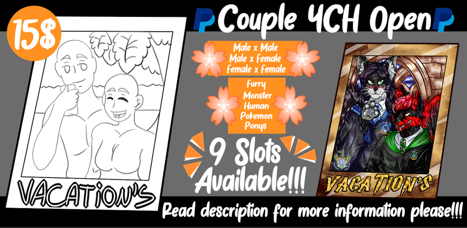 - After you claim, I will send you a comment or a note (maybe both) so that you can send me the reference of your character, I will start making the sketch after you send the first part of $, so little by little I will pass the progress to see if you are satisfied with it !, the other half will be given in order to deliver the commission fully ready.