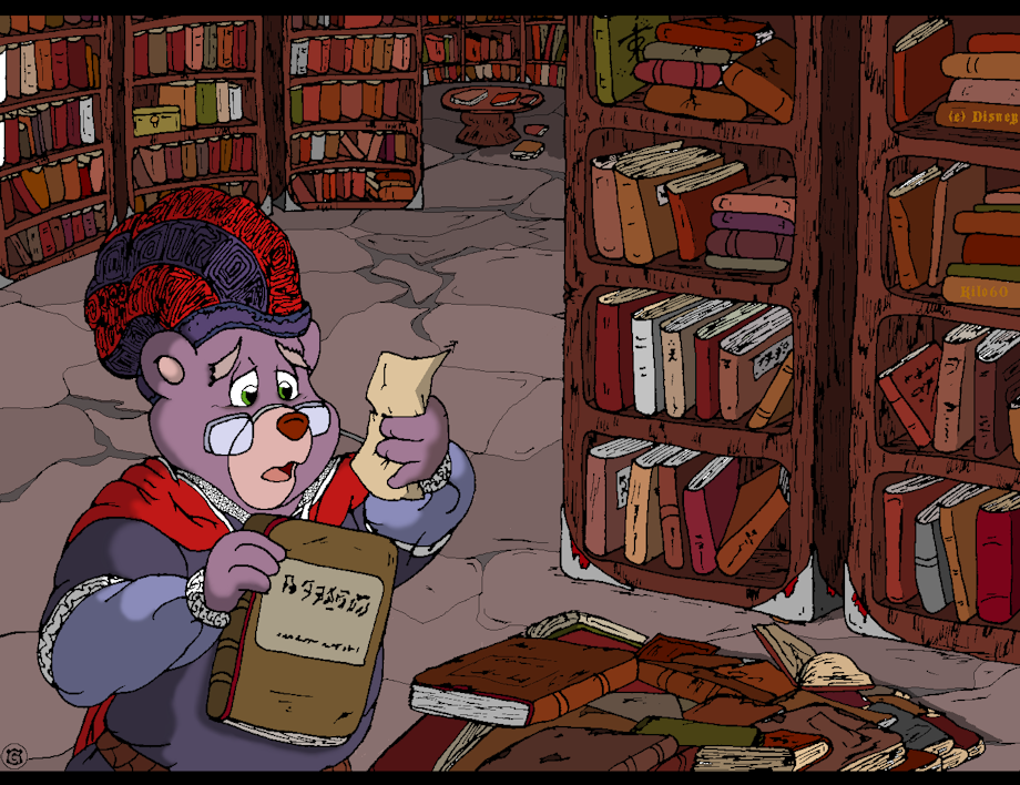 While the other bears were working to rebuild the city and grow crops, Zummi took it upon himself to rebuild and refurbish the Great Library. He managed to copy a ‘paper mending' and a 'leather rebinding’ spell from the Great Book of Gummi. It worked very well… however, it only worked on one book at a time…