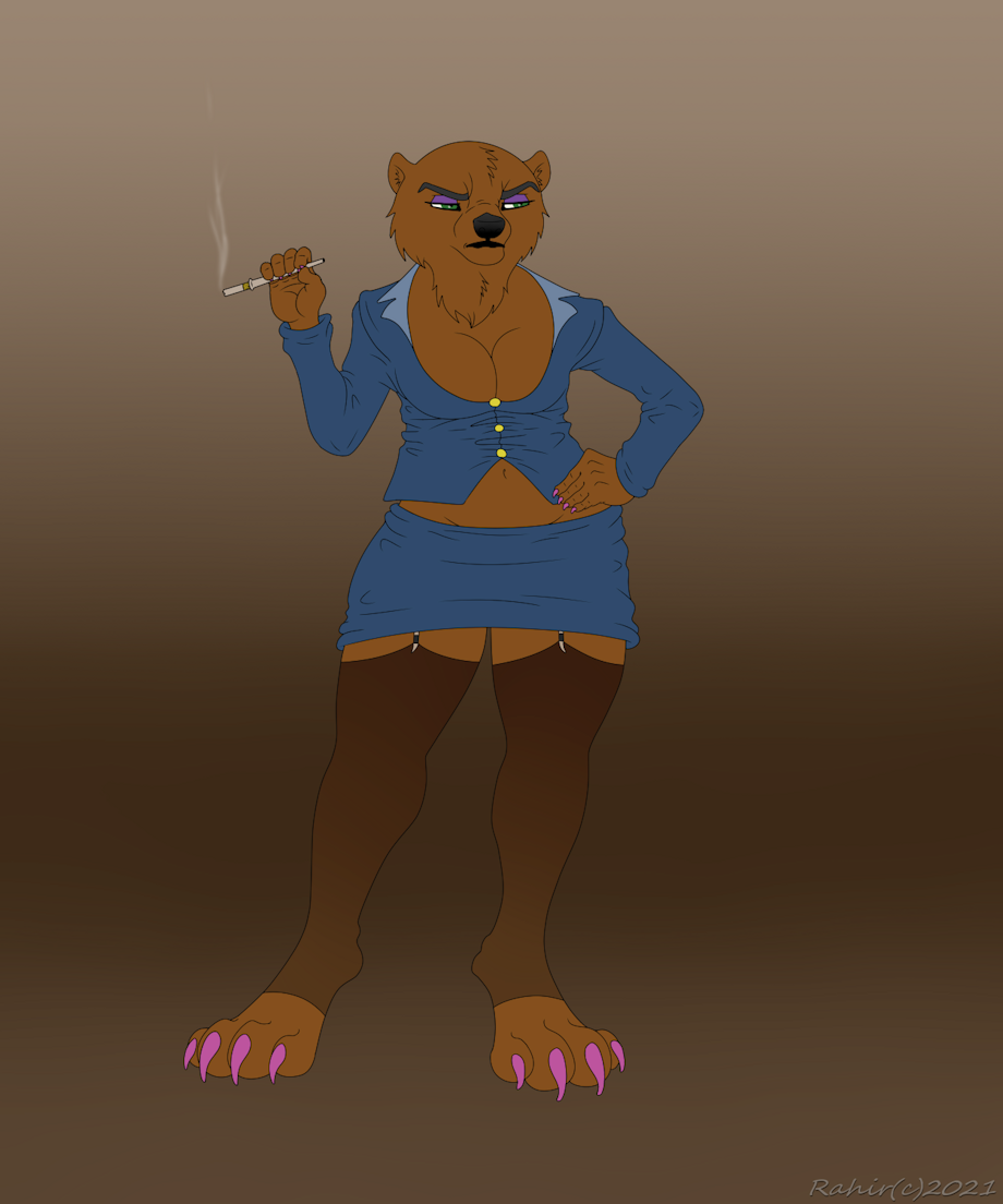 Tried to think of what would be business casual for furries with a bit more risque twinge. Also wasn't sure if to make her a bear or an otter while drawing, and never really decided. Lets say its some kind of hybrid...