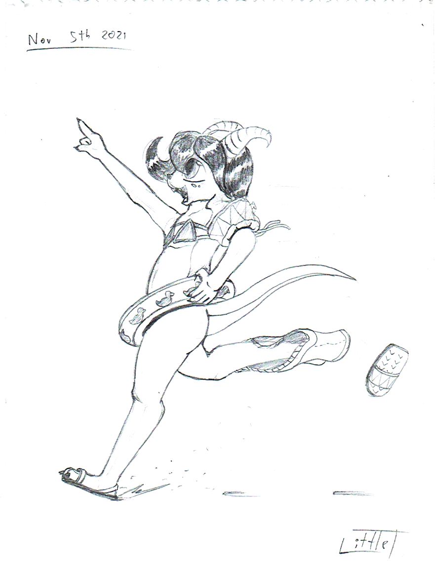 One I left to submit, of a little mix horned little demon with all glee to conquer the beach, beach shorts not required.