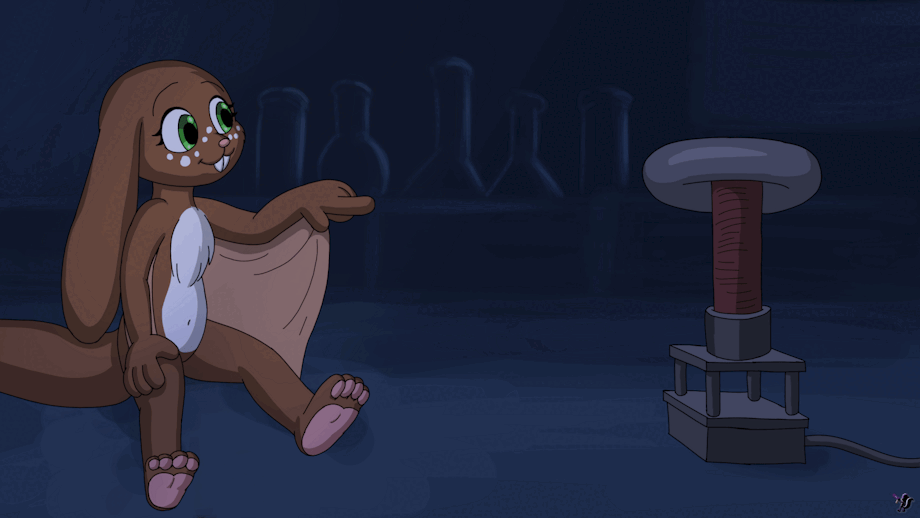 Xumeas showing off how she can arc electricity from her body. instead of using a person shes using a tesla coil. shes practically a living generator! just be careful though, them bolts of electricity are not just for show.