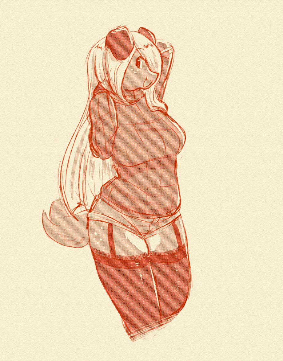 Oh, the joys of lots of characters. I feel ya there! But she's a total cutie, and I love the combination of her comfy sweater and sexy stockings. Her floppy ears are adorable, too, and her long hair is so pretty. I do hope we'll get to see more of her again sometime!