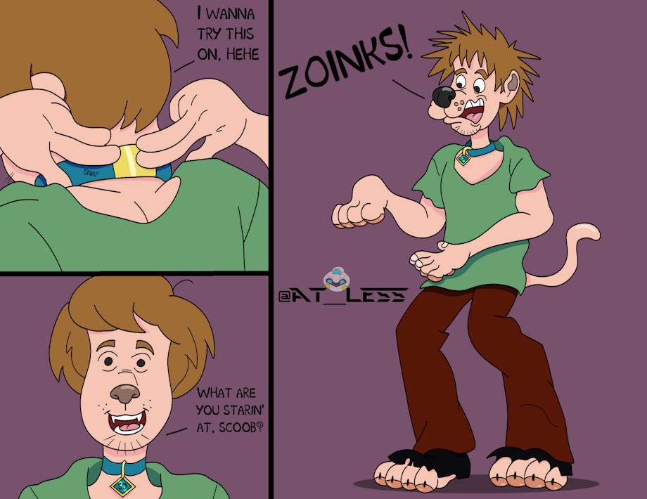 Gift/Trade for Veneficus-Rex on FA. They wanted to see what happens when Shaggy put on a dog collar
