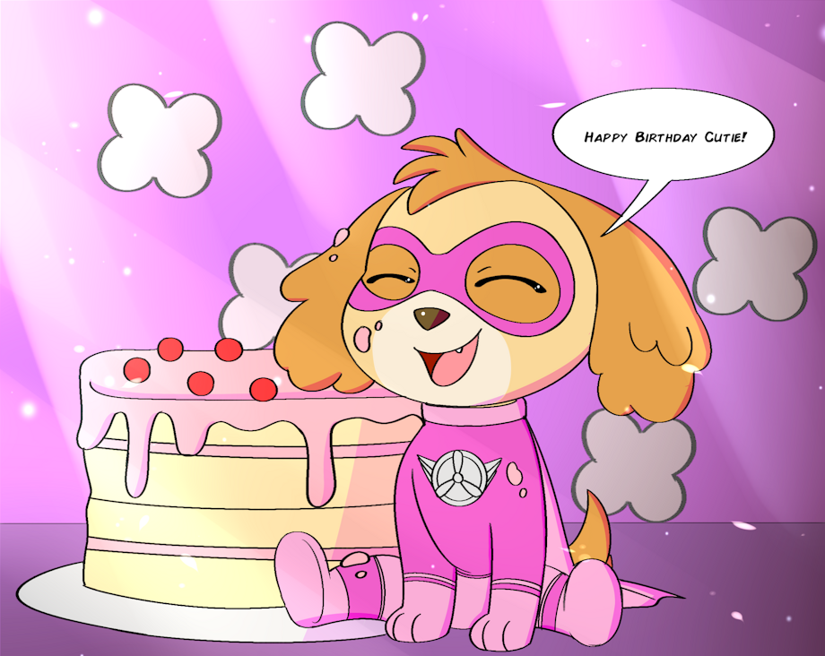 It's Skye wishing me a happy birthday in her cute Apollo Super Pup outfit. I love it & makes me happy & glad the artists can really do this for me.