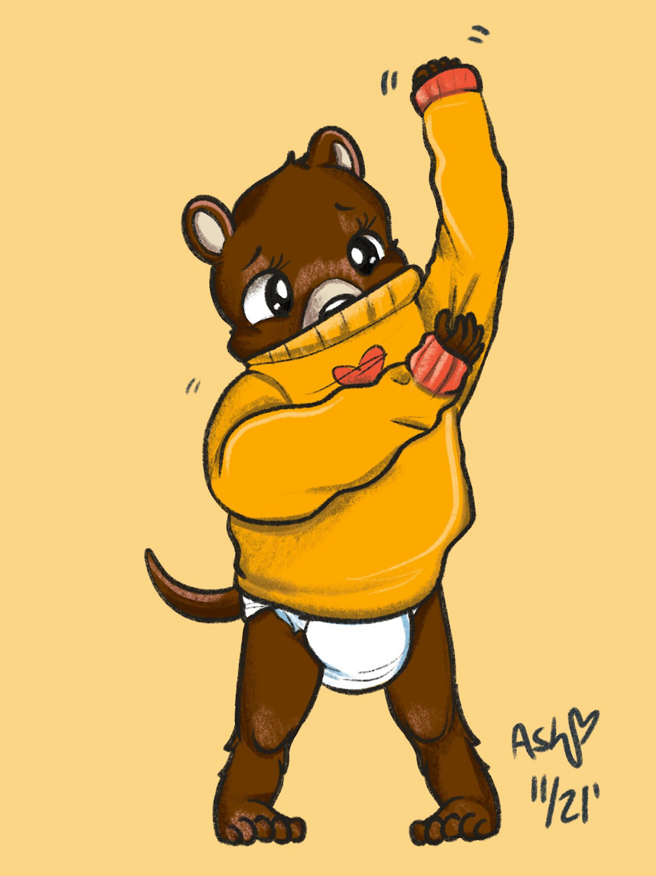 Elise wanted to put on her sweater all by herself, though she seems to be having a bit of trouble getting her arms through the sleeves i'm sure she can do it.