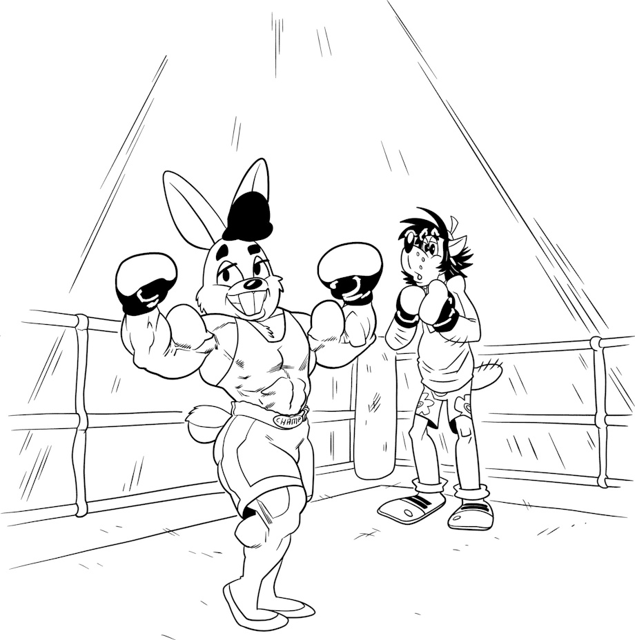 "Well, Just You Wait!" was a Soviet, later Russian, animated series. The series follows the comical adventures of Wolf (Волк), trying to catch – and presumably eat - Hare (Заяц). It features additional characters that usually either help the hare or interfere with the Wolf's plans. In one episode called "Olympics" Wolf follows Hare in the 1980 Summer Olympics in Moscow and messes things up. He meets the champion of boxing, who happenes to be a hare as well... but while the main character is somewhat feminine and or girly, THIS hare is a hyper-trained, musclebound athlete. He enjyos to flex his guns in the ring and Wolf gulps, realizing he is in troubles again...
