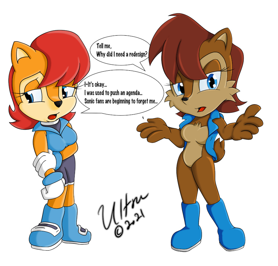 I really want to understand the reason for the redesigns if none of the games characters needed it. Of course, if you don't consider the redesign from classic to modern, but that was nothing more than a vision of everyone older. And Sally and the others had already been adapted to the modern style, so there's no reason they just have to be rebooted. Was SEGA also annoyed/worried that Sally didn't wear any clothes?