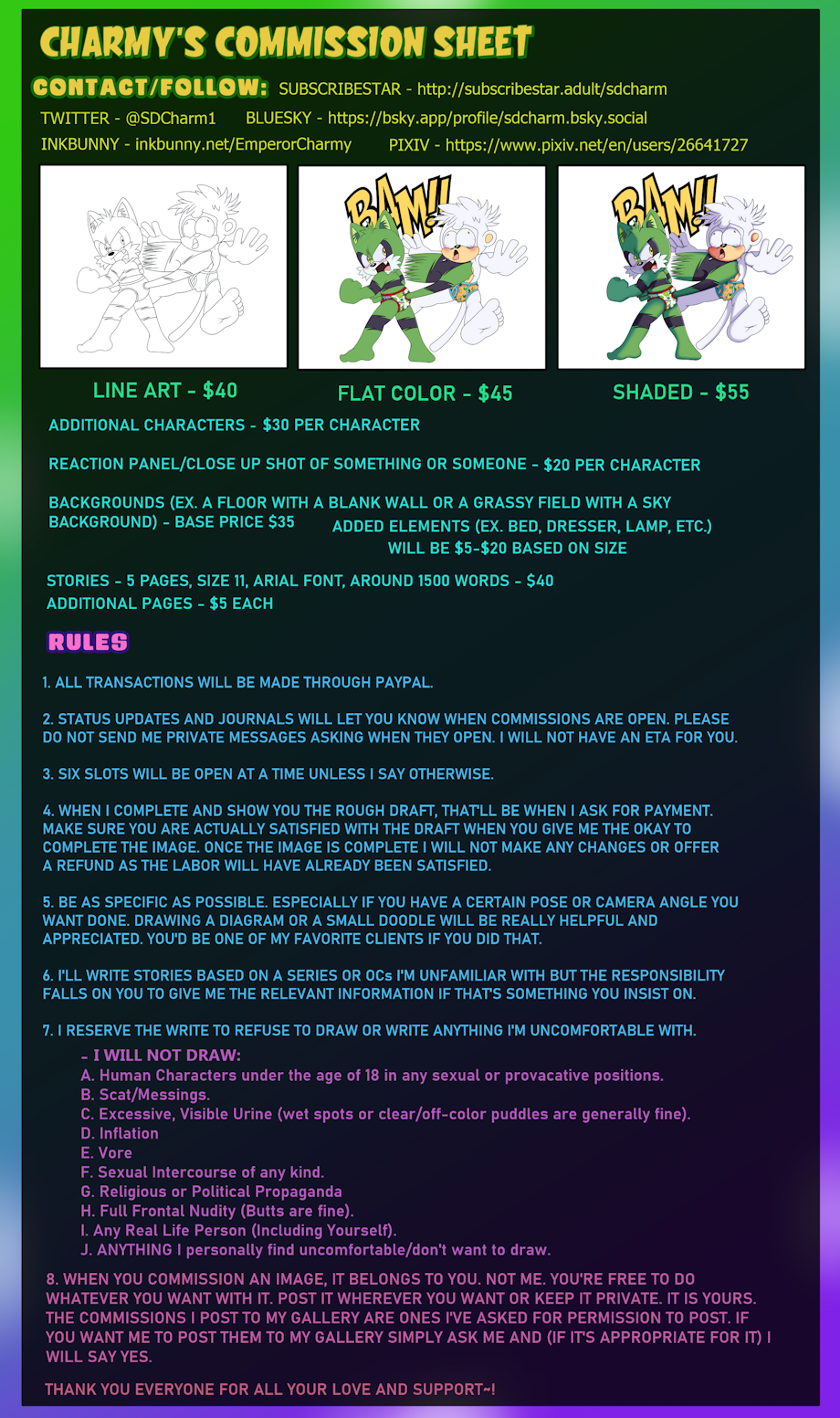 INFO SHEET - Please fill this out when contacting me for a Commission. Just type it out and copy and paste it to me when you do. It will just make things easier for me.