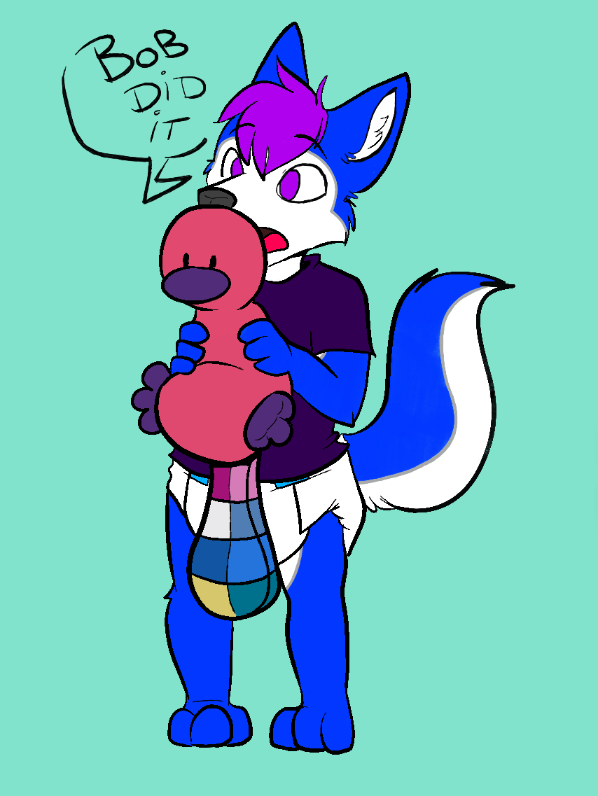 The lined one was don't by babystar on furaffinity.net, I won a raffle and got a free scratch, I then colored it. If features my sona and a plush from her comic strip shine.