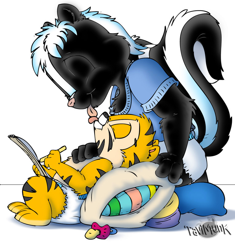 I love watchin Tavi draw. ^^ In this pic I am about to give him a lil lick, and he has the same idea, so we end up licking each other's tongues. *giggle* Cute pic by Tavi Munk.