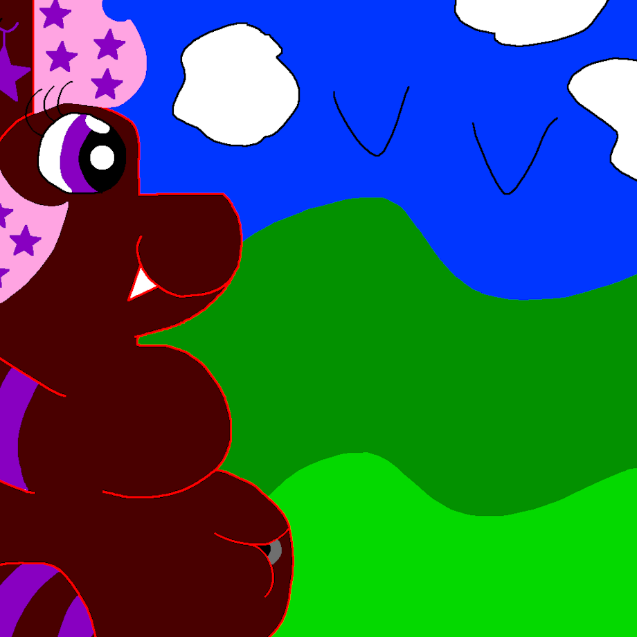 It's finally time to reveal a bit about her. Her name is Belle E Ville and unfortunately, she has a bit of a troubled history, notably from how others react to her. Unfortunately, she's been accused of being evil like a vampire or the devil because of either her tooth or her hair accessory (a pair of plastic horns). As a result, she'll wear a mask to try and cover her face, which also randomly changes to an evil smirk for reasons she doesn't know and can't control.
