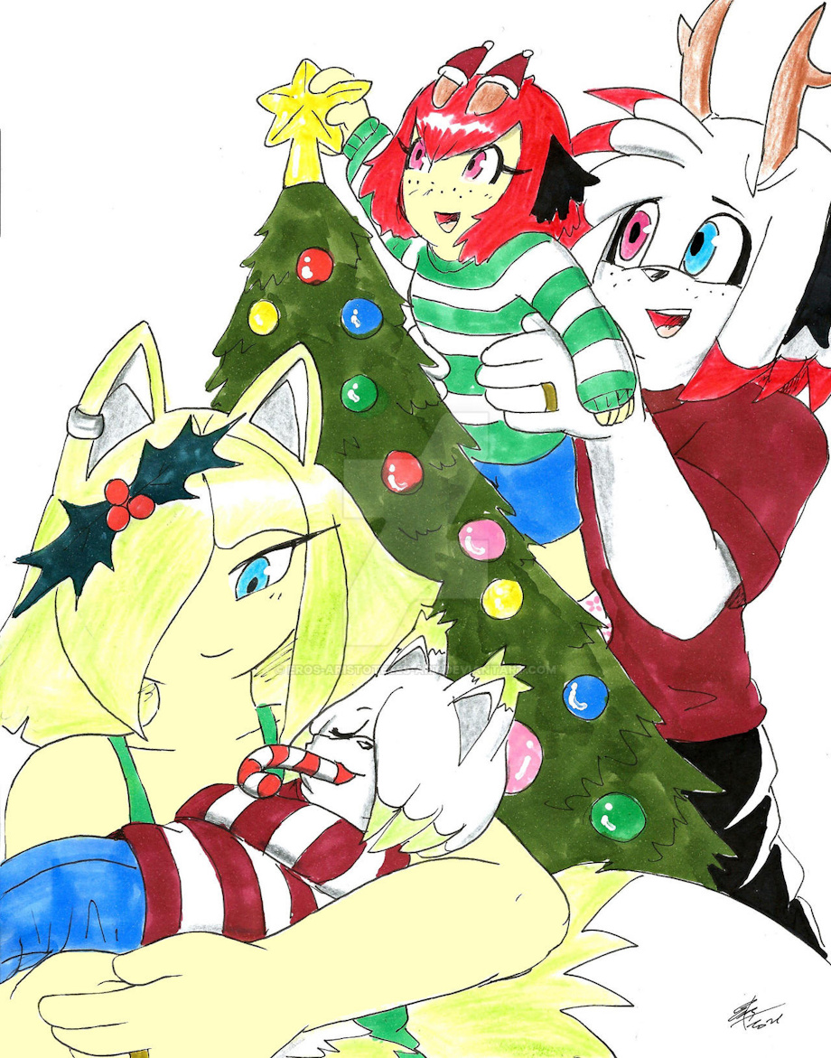 Very cute family picture, especially their little one sucking on a candy cane while sleeping!!! <3