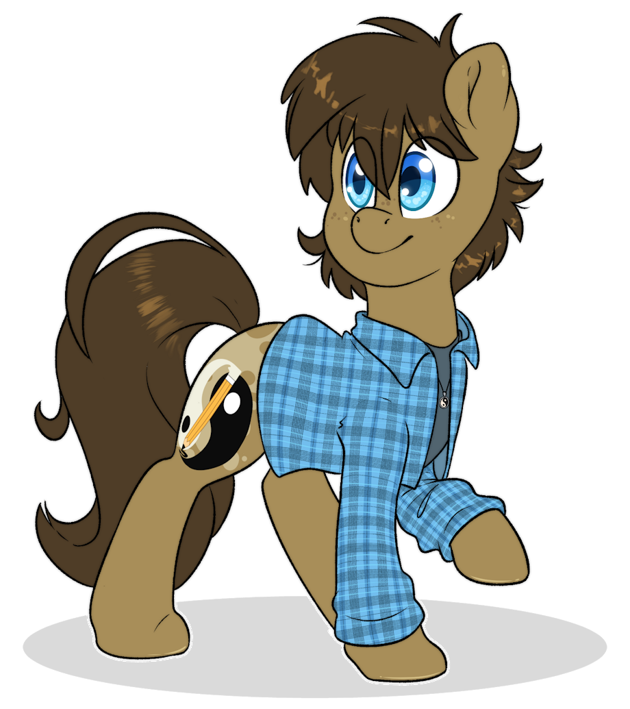 I haven't drawn him in a shirt in a while so while warming up for an art stram (which I do every friday at Picarto.tv/FluffyXai). I tried out using a checkered shirt pattern brush but it ended up being way more work having to adjust it to not look like a lazy overlay (and still kinda failing) and adding extra bits.