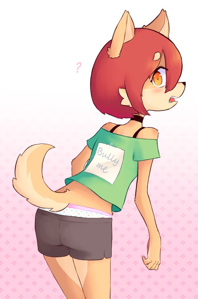 With her underwear peeking out like that with the sign on her back, I swear someone might give her a wedgie