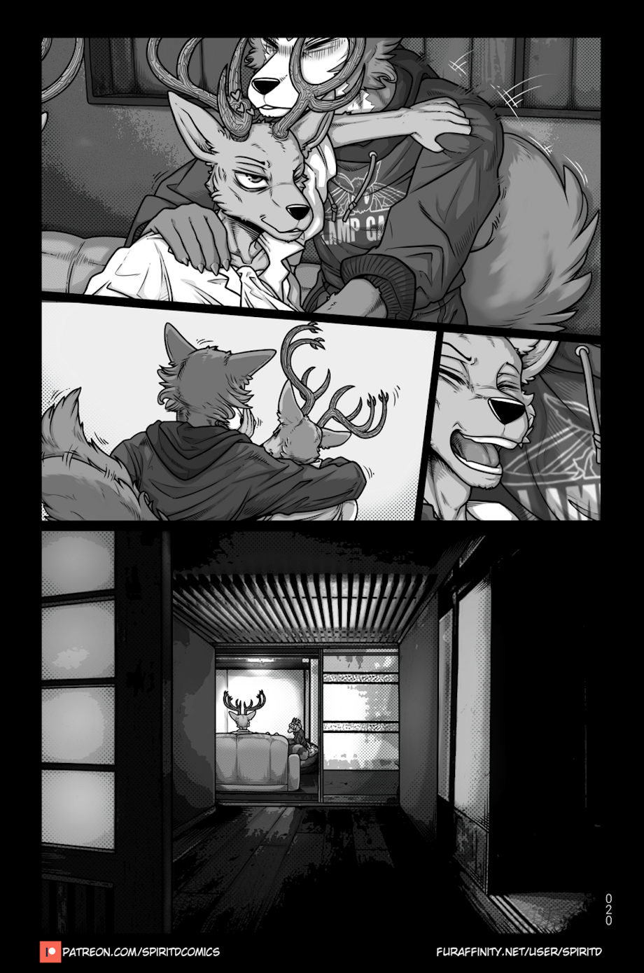 Don't worry, I won't confuse ya anymore after this page I think. The page has a black outline on purpose. I wanted to show what was going on here in a bit of a surreal way and not super straight forward or drowning you in inner thoughts. Plus it's always better when you come to your own conclusions. I also tried to recreate the feel of an Ozu film with the last frame.