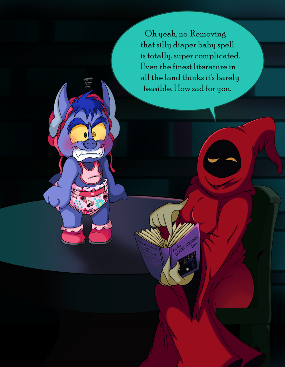 The finale for the Baby Imp series. Imp has finally been returned to the Fright Zone but Madame Razz's spell still hasn't worn off. He's gone to Shadow Weaver to break the spell but she insists it's more complicated than it seems. In reality her "research" is her reading what is obviously an old romance novel. She doesn't really seem interested in helping him. Imp is furious, clearly able to see that she's stringing him along but is also unable to do anything about it.