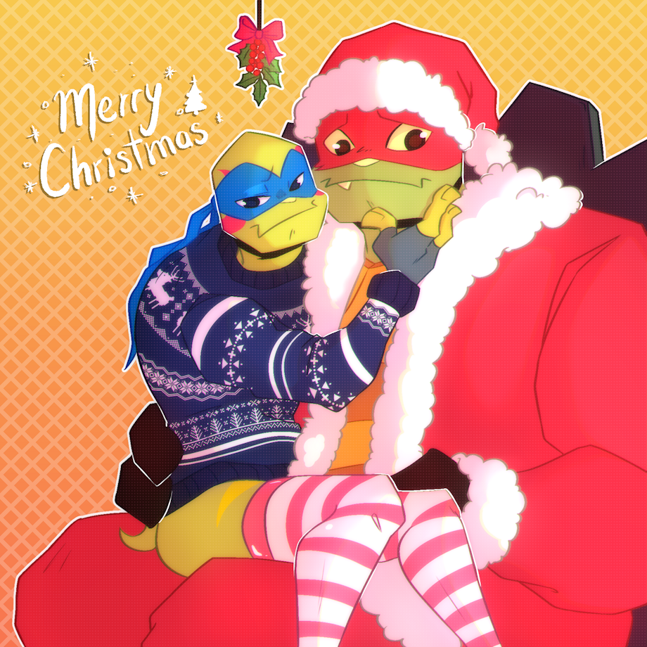 AAAHH OH NOO! This is so freaking cute that I don't know how to react or what to say! I love their size difference, Leo's lovely expression full of warmth and his shirt! It's so pretty and detailed! His socks are super cute too :D Raphael as a Santa is so great idea too! I bet Leo wants to sit in that lap as long as possible :)