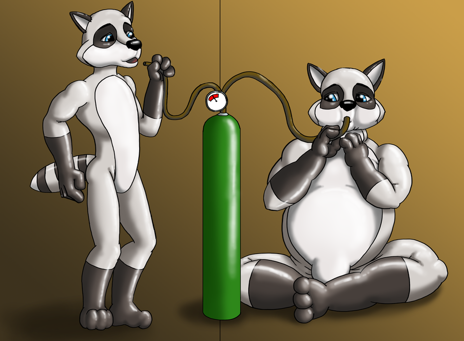 I was whining about wanting to do a latex pic in livestream, have this really cool idea for one too....and Stumpycoon stepped forward and volunteered to have his character latexed and inflated, so here's rubbercoon the inflatable coon