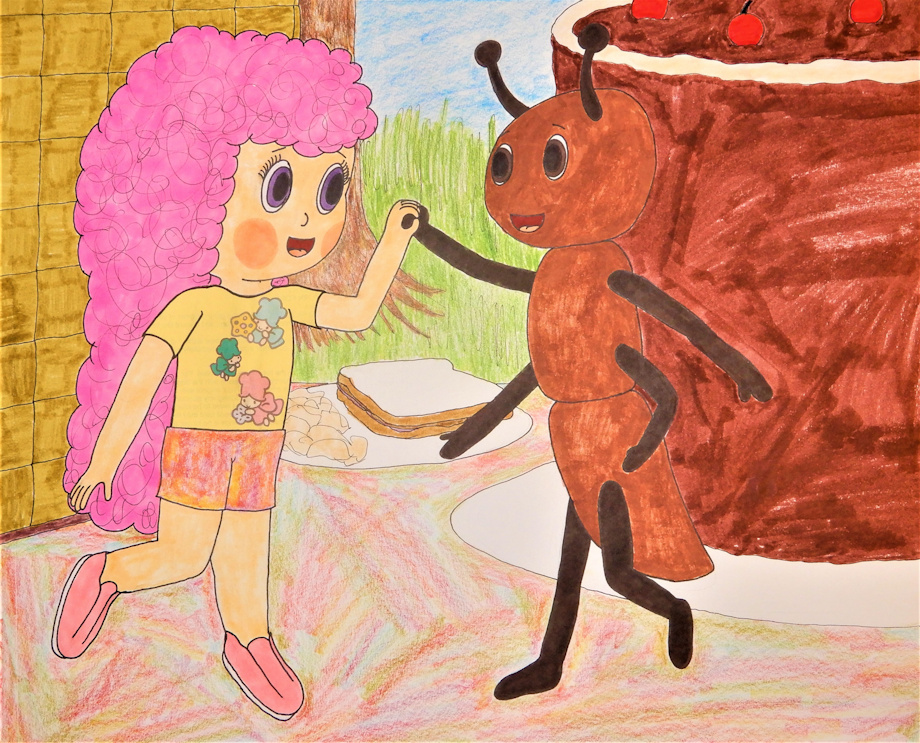 Here's my contribution to "Peter the Ant Day 2021" at Newgrounds, and it features Peter dancing with my OC Dolly Melissa. While picnicking with her parents, Dolly seems interested in an ant that likes dancing more than he does work. So with her "power of imagination", she shrinks down to his size so she can join him in the dance. But as much as Peter likes having a dance partner for a little while, he realizes he must return to his duties as a worker ant. Dolly understands this and lets him do so, but not before giving him a piece of cake first. After seeing this act, her parents now wonder whether what she did was out of generosity or just plain silly.