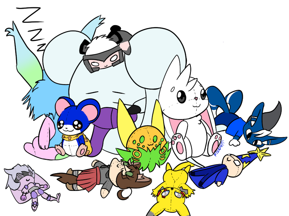 ) came up with the idea of a sortof new year group picture where a bunch of friends characters are plush toys and honestly it was super fun to draw out.