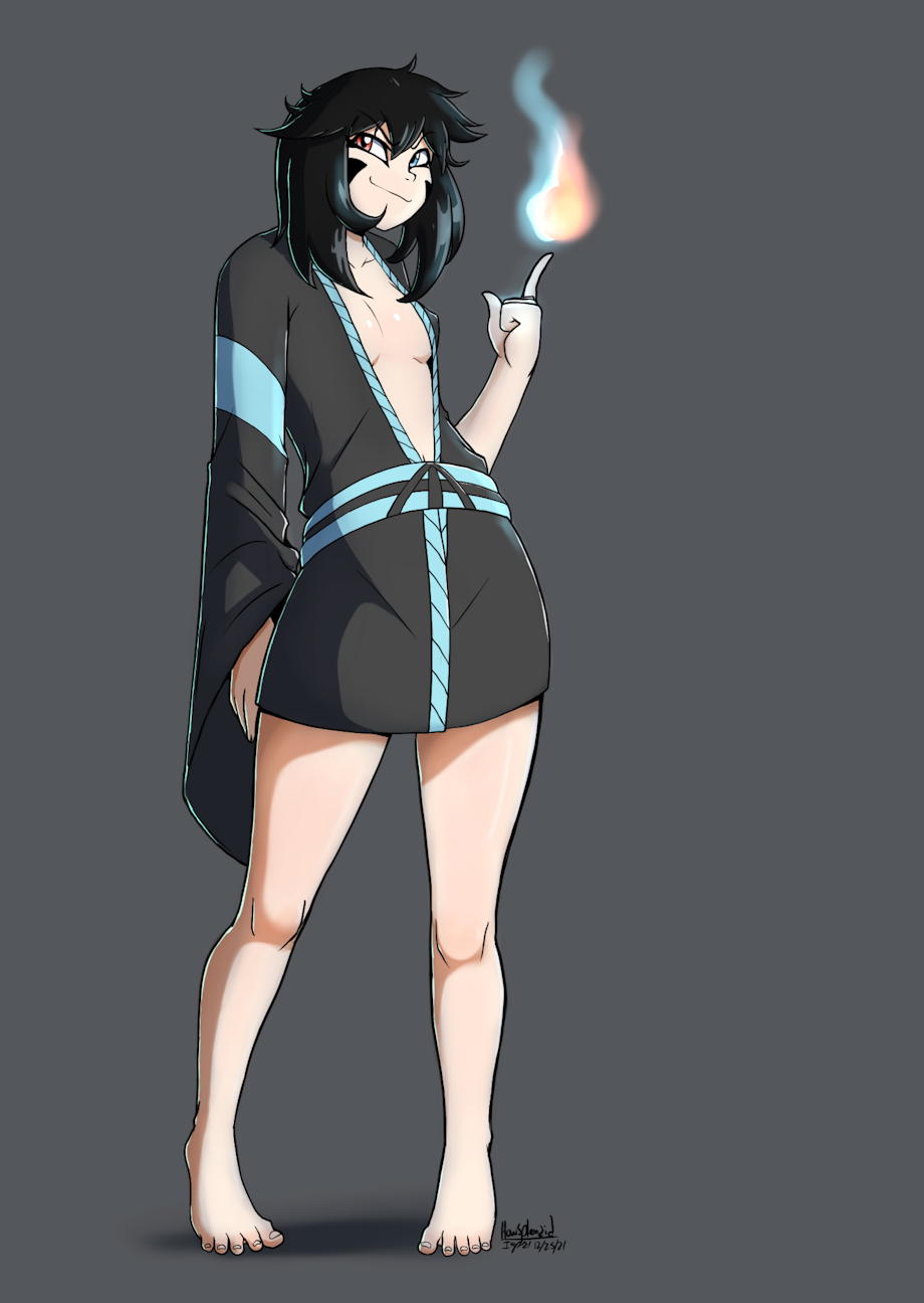 Drew my character Caroline as a human based on looking glass ai Mr. blue used. Guess she really be Japanese now