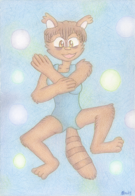 I draw my bat boy character Kuraresu with simple colored background and I draw this art in 2017. on this art I try to draw the color scale background, and I use the different color on upper part and bottom part, it can be good because his wings separate the up and down side. I really love his expression and pose, he is very cute.