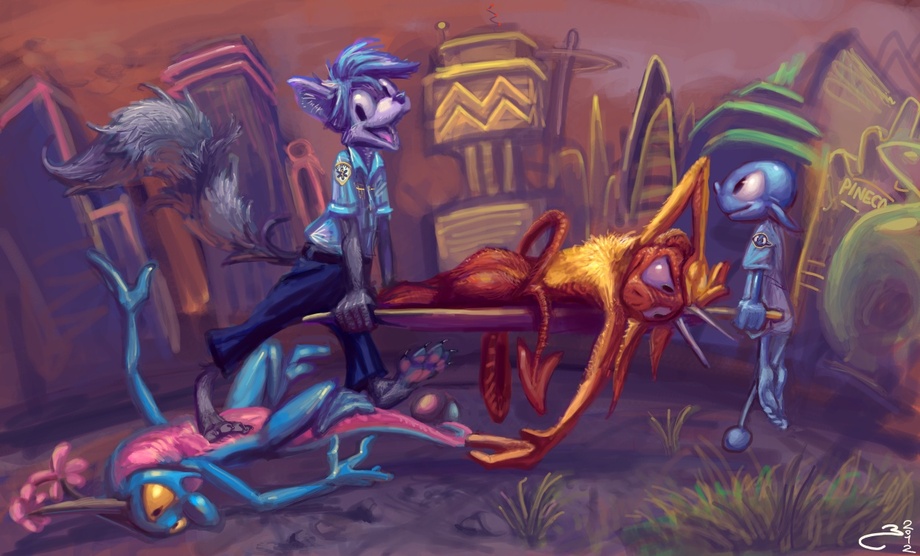 I made a tiny drawing a long time ago for some raccoon fellow and only got around to coloring it recently. And so that is what this is. It sought to commemorate his triumph in the Emergency Medical Technician training program and hopeful future success in the field of people continuing to hurt themselves and need help. I suspect his partner may have cheated, however