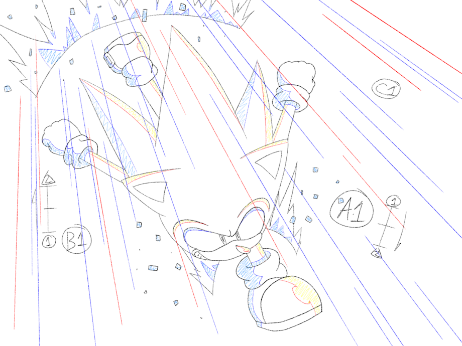 For more information about the process, check out Tonari Animation's video on the subject of how anime is actually made. This process is something I borrowed from it. If there's anything else that wasn't taken from the video, I may have learned from tons and TONS AND TONS of various sources I had to find while using Google Translate in Japanese for a few months, examples are effects like the diffusion filter(DF) on Sonic and that huge ugly "incident light"(入射光) in the corner.