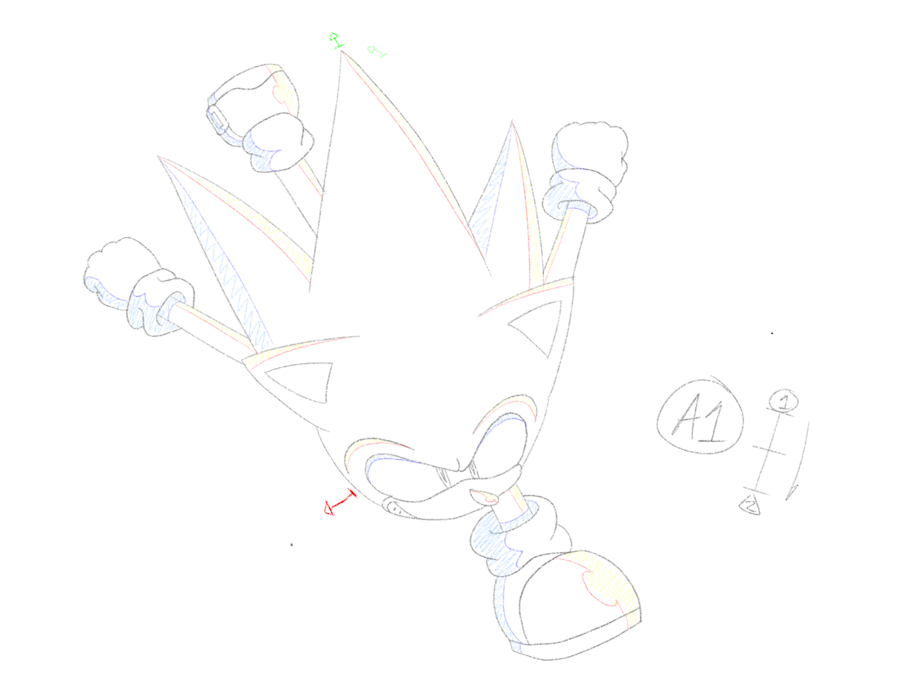 For more information about the process, check out Tonari Animation's video on the subject of how anime is actually made. This process is something I borrowed from it. If there's anything else that wasn't taken from the video, I may have learned from tons and TONS AND TONS of various sources I had to find while using Google Translate in Japanese for a few months, examples are effects like the diffusion filter(DF) on Sonic and that huge ugly "incident light"(入射光) in the corner.