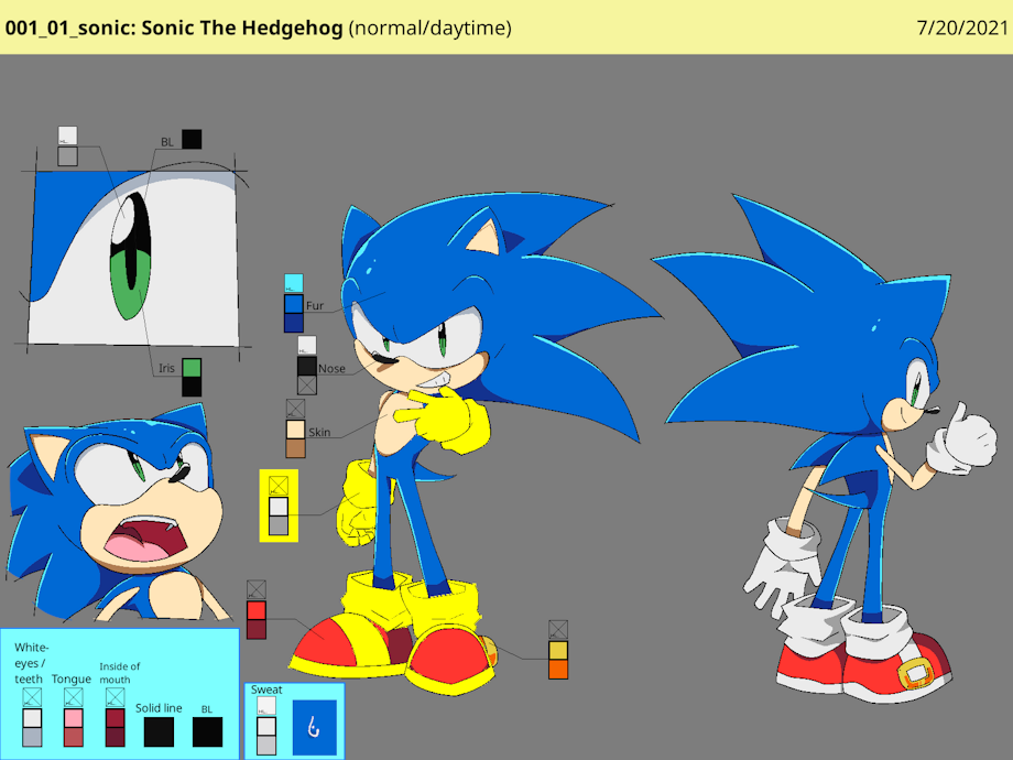 For more information about the process, check out Tonari Animation's video on the subject of how anime is actually made. This process is something I borrowed from it. If there's anything else that wasn't taken from the video, I may have learned from tons and TONS AND TONS of various sources I had to find while using Google Translate in Japanese for a few months, examples are effects like the diffusion filter(DF) on Sonic and that huge ugly "incident light"(入射光) in the corner.