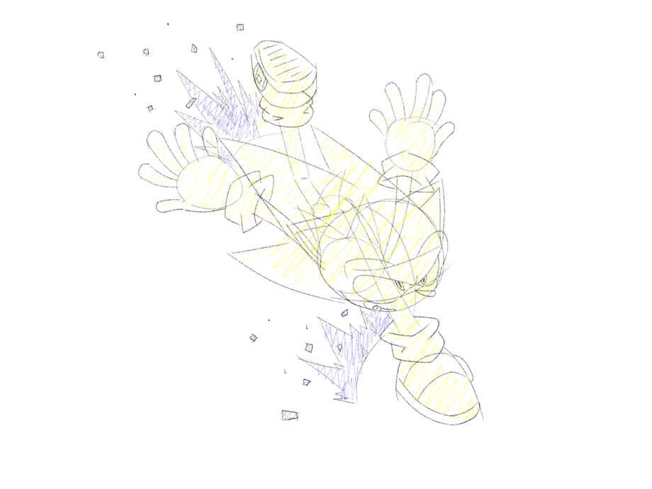 4. Layout corrections(in pink), making sure the backgrounds look great, character placements look good, and the fx are more detailed and realistic