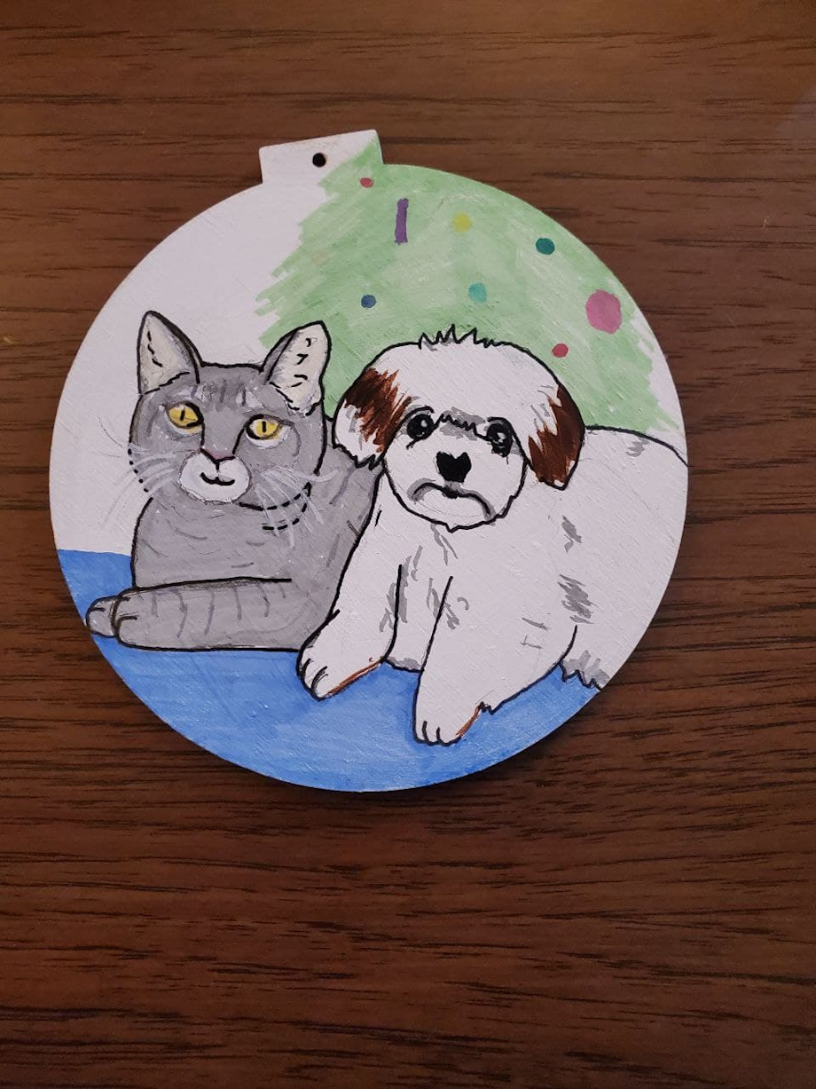 Sweet little ornament made for my dad of his two little furballs.