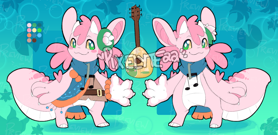 First adopt of the year! Water based Axolotl dragon! They're a bard and come with a custom lute