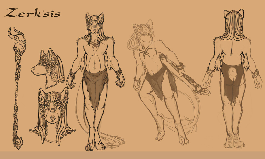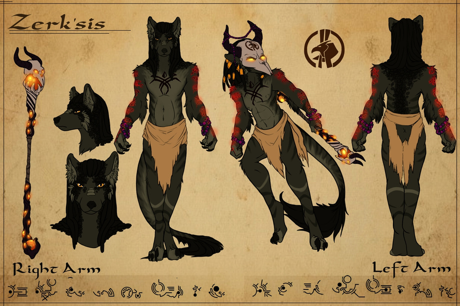 fugin sweet (and by far my fave) reff sheet of my lizian (wolf/raptor/snake hybrid) sorcerer, zerk'sis done by FsMaverick over on FA