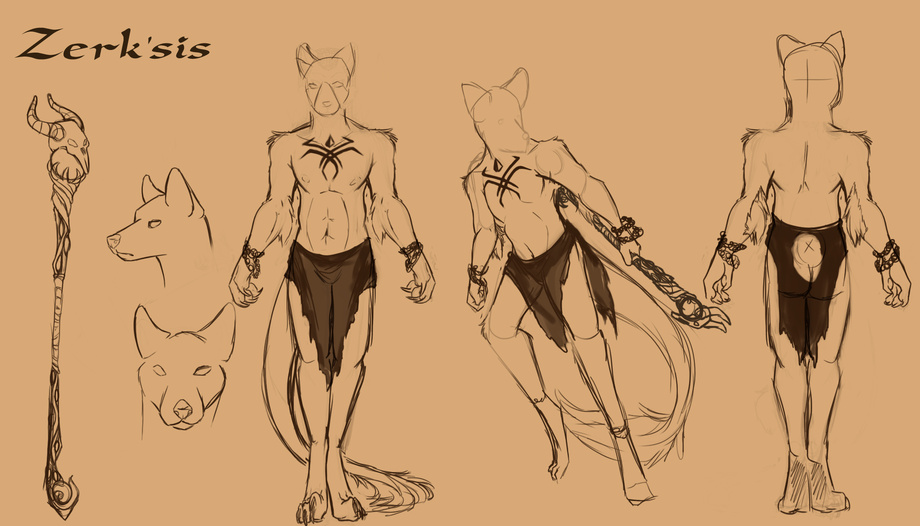 fugin sweet (and by far my fave) reff sheet of my lizian (wolf/raptor/snake hybrid) sorcerer, zerk'sis done by FsMaverick over on FA