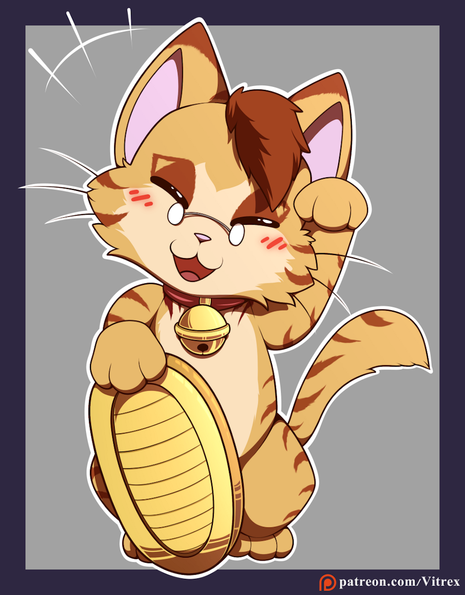 Hey there! Lil reward for tsukari, who has a kitty friend who goes by the name of Manick (https://www.furaffinity.net/user/ma200/). Manick sounds pretty similar to maneki~, so it became a natural combination that needed to be realized! Lol~